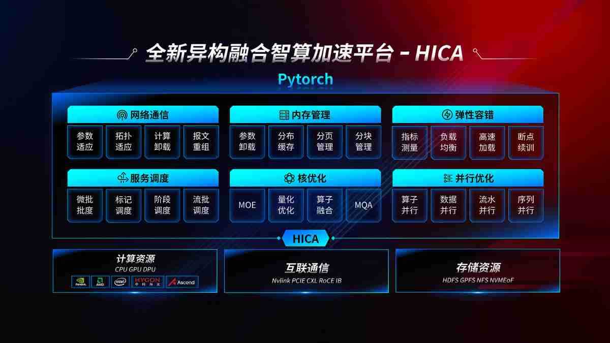 通过自研的服务层、、、中间适配层、、以及调度编排算法,,,,采用数据并行、、、模型并行等多种并行方式,,,,把并行计算任务进行有效的分解,,,使其分别由相应的软件栈和算力资源来承接。。。。当GPU资源变化,,,,HICA可以实时动态调度计算子任务并调整模型拓扑和架构,,,以充分聚合各种算力资源。。。