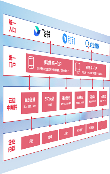 对协作平台提供支持服务,,支持企业应用与协作平台对接,,包含组织同步、、、消息集成、、、待办集成等。。。。支持目前主流的协作平台:钉钉、、、企微和飞书。。